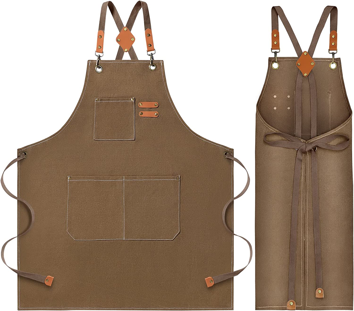 16 oz Durable Canvas Stain Resistant Apron Workwear with Pockets and Cross-Back Straps. Gift for Woodworker, workers, painting lovers, restaurant waiters, chefs, etc. - Bring a Smile to Their Face.